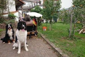 Liebe und guterzogene Hunde sind willkommen, gerne auch mehrere Hunde und große Rassen. Gassi-Möglichkeiten sind direkt ab Haus vorhanden. Auf benachbartem Eigentümergrundstück lebt ein lieber Landseerrüde.